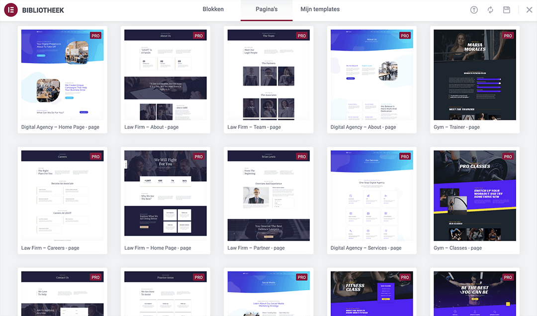 In de gratis versie zijn al een aantal templates die je kunt gebruiken. Met Elementor Pro krijg je meer dan 300 professionele templates en blokken extra.