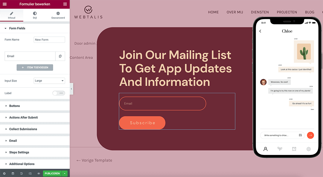 Elementor Pro heeft een formulieren widget waarmee je alles visueel in de Elementor editor van je website kunt bewerken.