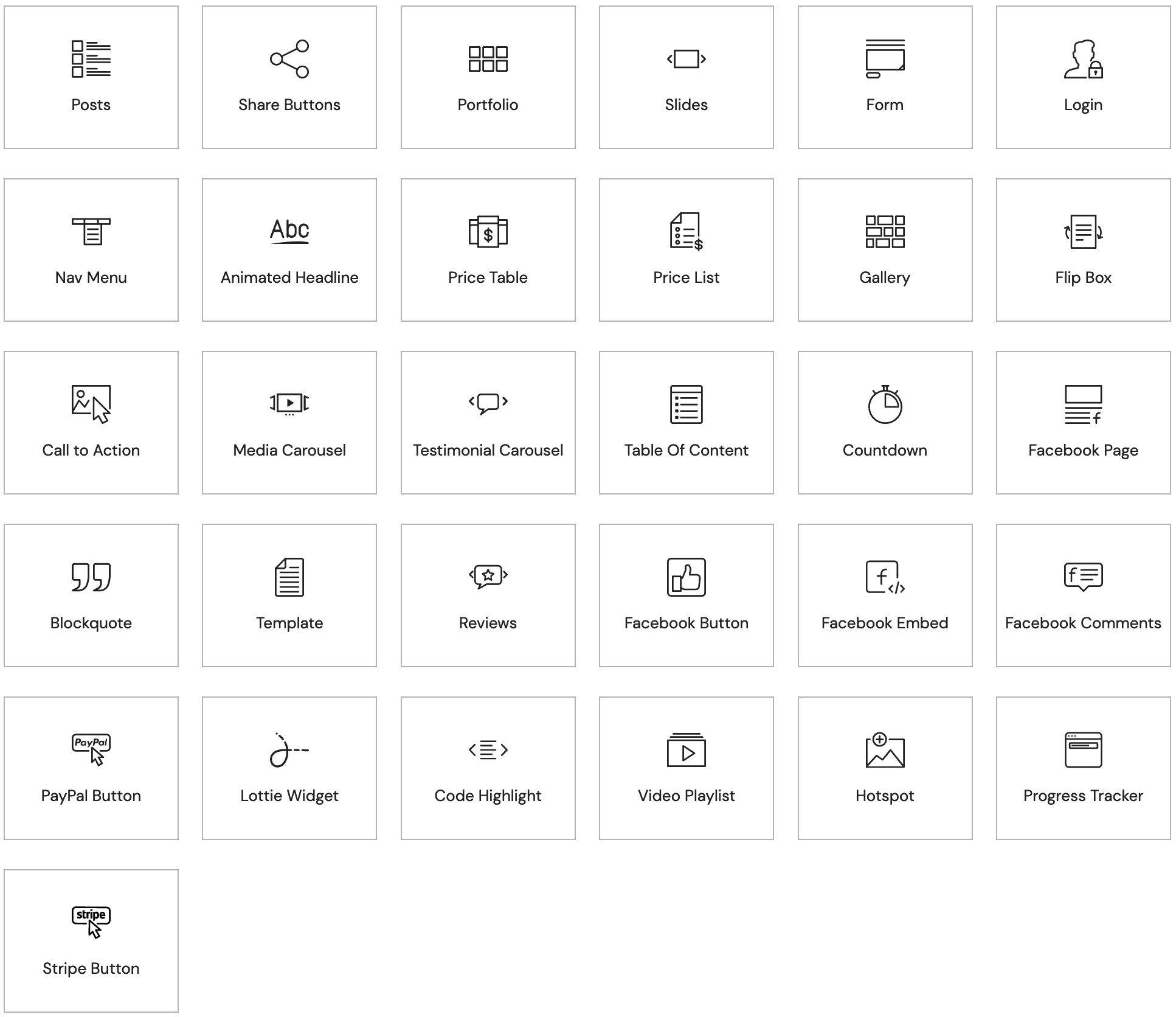 Natuurlijk heb je niet al deze widgets nodig om schitterende pagina’s op je website te bouwen, maar alle widgets kunnen wel een keer van pas komen. Sterker nog, het kan je extra plugins schelen.