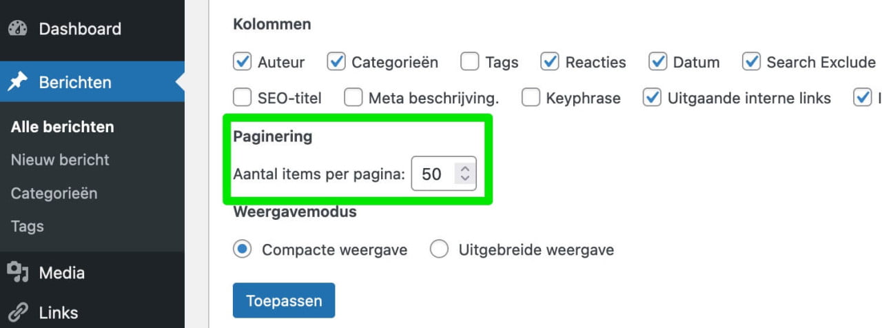 Het is daarom zeker de moeite waard om te bekijken hoeveel content je op iedere pagina in het beheerdersgedeelte zou willen tonen.